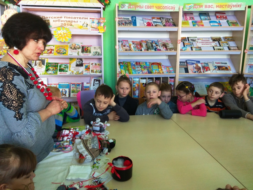 В дни весенних каникул в районной детской библиотеке состоялась творческая встреча с Людмилой Ивановной Толпыго «Радуга рукодельных фантазий». Для юных читателей Людмила Ивановна рассказала, что самая распространенная игрушка – кукла, образ человека, его символ. В ней отражается время, история культуры, история народа и страны, развитие разных поколений. Показала, как изготовить, какой была народная кукла и что она значила для наших предков. Для ребят пригодились всего несколько лоскутков ткани, обычные нитки, крупица творчества — и кукла готова. В результате все собравшиеся научились нехитрым способом своими руками изготавливать куклу, которую можно будет использовать в качестве оберега для дома и семьи, а также оригинального подарка для друзей и знакомых. А самому активному участнику Людмила Ивановна подарила куколку – оберег. Участники мастер-класса проявили живой интерес к истории появления и создания кукол.