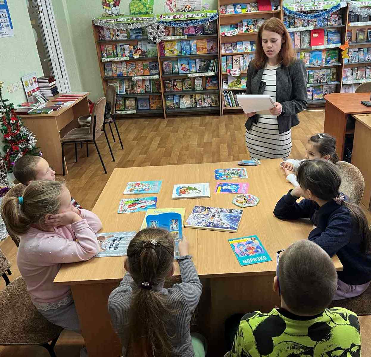В ходе мероприятия участники погрузились в атмосферу литературных викторин «Новогодняя сказка» и «Зима в загадках», ознакомились с новыми поступлениями в фонд библиотеки. Дети имели возможность вспомнить известные сказки, связанные с новогодней тематикой, а также приняли участие в онлайн-викторине под названием «В Новый год за сказками», что позволило расширить их кругозор и укрепить интерес к литературе.