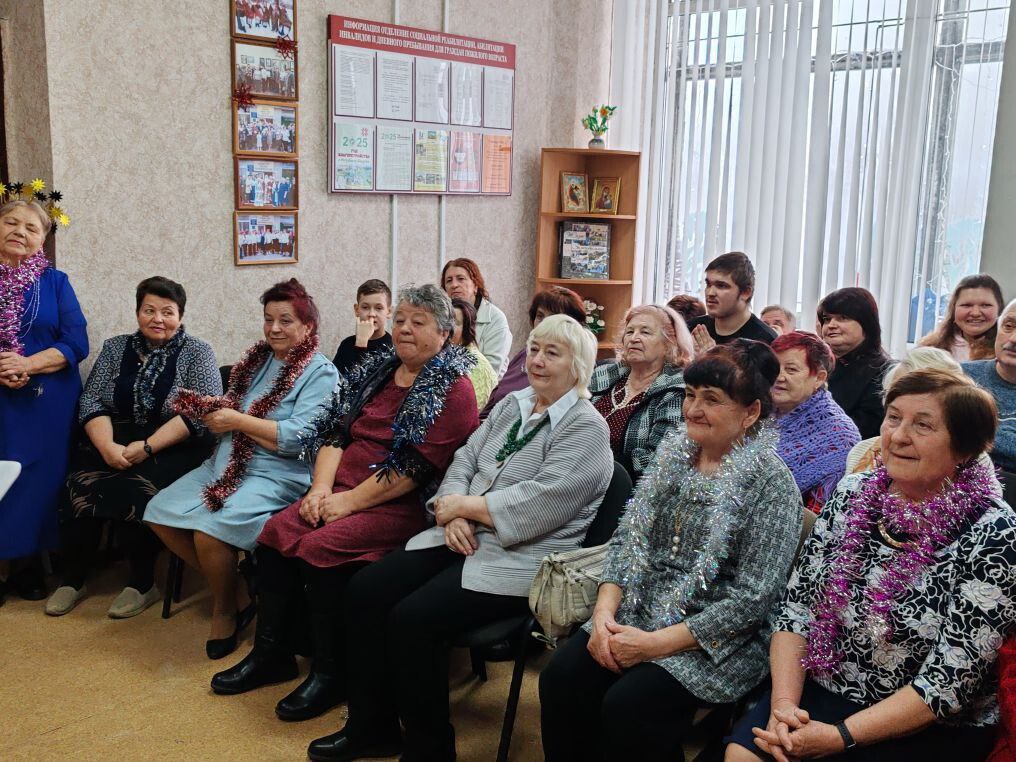 В отделении социальной реабилитации и дневного пребывания для граждан пожилого возраста сотрудники центральной библиотеки провели новогоднее мероприятие «Сегодня праздник – Новый год» в рамках проекта «Для тех, кто годы не считает».