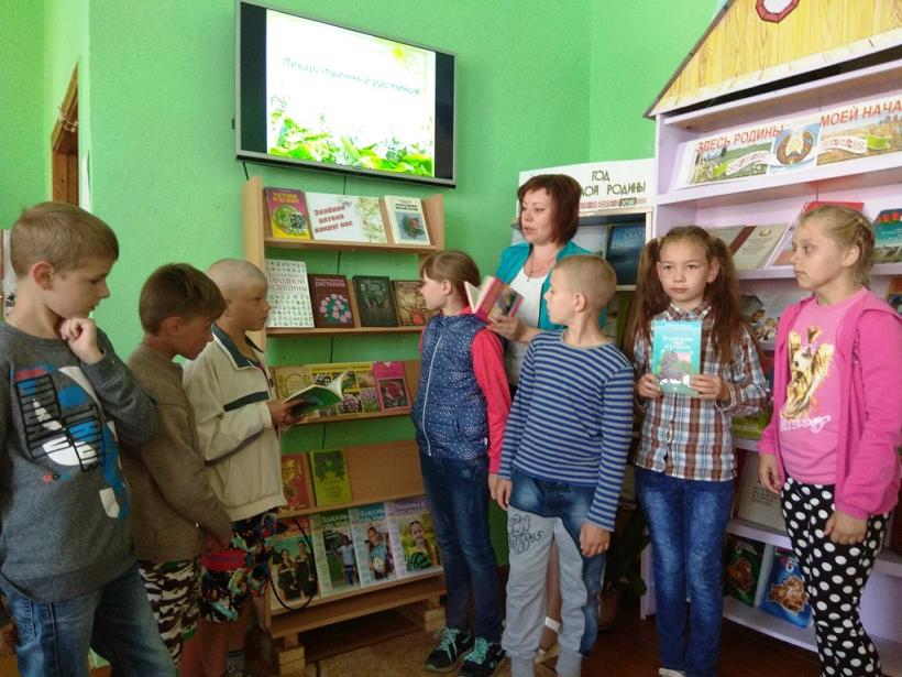 Ребята отправились в виртуальную экскурсию, где узнали, что есть «живая» и «неживая» природа, совершили прогулку в лес, где познакомились с лекарственными растениями. С интересом отвечали на вопросы викторин: «Лесная аптека», «За здоровьем к растениям», «Узнай растение», «Какие растения нас лечат». Завершилась экскурсия обзором у книжной выставки «Зеленая аптека вокруг нас».