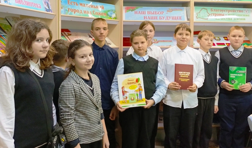 С целью повышения правовой культуры будущих избирателей в филиале «Районная детская библиотека» прошла правовая игра «Что такое выборы?». В начале мероприятия участники послушали информацию об избирательном праве, узнали о процессе проведения выборов в Республике Беларусь, о значимости и важности голоса каждого избирателя. В ходе мероприятия участники ответили на основные вопросы избирательной кампании, активно обсуждали практические ситуации, связанные с выборами, и получили важные и полезные знания, которые пригодятся им в статусе избирателей на выборах. Вниманию присутствующих была представлена тематическая выставка «Наш выбор – наше будущее», на которой представлены актуальные издания о различных аспектах избирательной системы, политических процессах, истории выборов Президента Республики Беларусь, о текущей жизни страны.