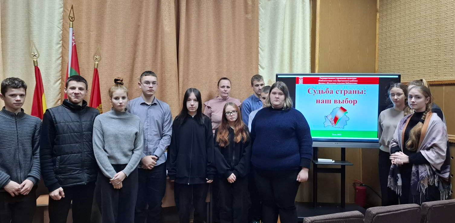 Сотрудники центральной районной библиотеки провели с учащимися Кричевского государственного аграрно-строительного колледжа актуальный диалог под названием «Молодёжь и выборы: формула ответственности». Цель диалога – повысить уровень знаний будущих избирателей о своих правах и обязанностях, а также о процессе проведения выборов в Республике Беларусь. В ходе диалога библиотекари рассказали о правах и обязанностях молодых избирателей, о том, как проходят выборы в Беларуси, а также о том, как важен голос каждого избирателя. Кроме того, участники мероприятия познакомились с книгой-победителем Национального конкурса «Искусство книги» в специальной номинации «В зеркале времени» под названием «Выборы в Беларуси: коротко о главном». Это уникальное издание рассказывает о формировании и развитии избирательной системы Республики Беларусь. В доступной форме в книге описаны все этапы подготовки и проведения выборов и референдумов, а также роль Центральной избирательной комиссии в этих процессах. Проведен обзор информационных ресурсов «Наш выбор – наше будущее».