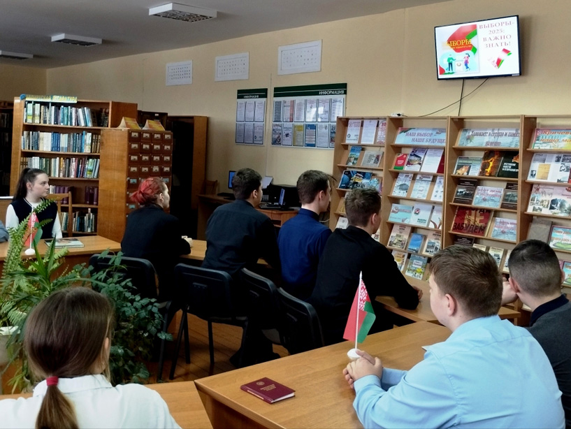 «Выборы-2025: важно знать!» – под таким названием в филиале «Городская библиотека № 1» состоялся информационный час, ключевой темой которого стали выборы Президента Республики Беларусь и избирательное право в нашей стране. Мероприятие было поделено на 3 блока: «Узнаем», «Размышляем», «Действуем», в ходе которых обсуждались проходящие выборы, вопросы будущего Республики Беларусь. Внимание будущих избирателей было обращено на порядок избирательного процесса, на право отдать свой голос досрочно или же в основной день выборов. Ребята с большим интересом познакомились с материалами информационной выставки «Наш выбор – наше будущее».