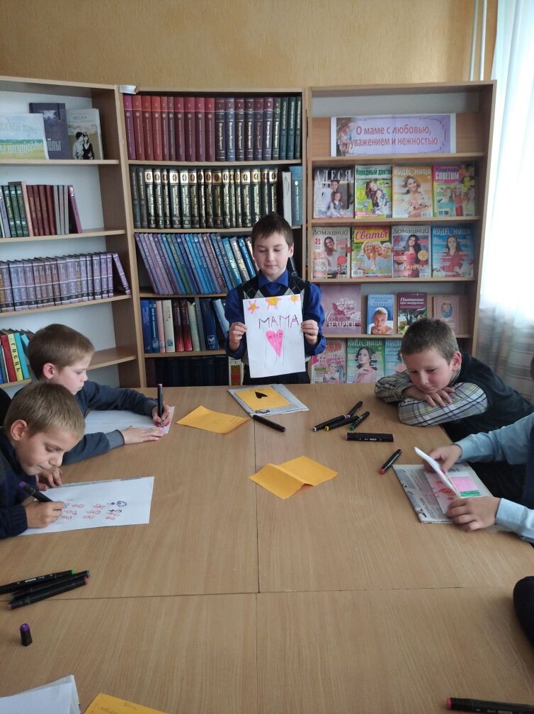 Библиотекарь познакомила ребят с историей возникновения Дня матери в Беларуси. Рассказала о роли матери в жизни каждого человека.