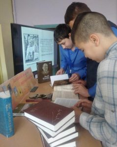 Городской библиотекой №1 в РЦСОН в отделении дневного пребывания для граждан пожилого возраста к этой дате был проведён час писателя «Дорогами судьбы Николая Чергинца». Ведущая мероприятия рассказала о трудном военном и послевоенном детстве Николая Ивановича, его футбольном увлечении, службе в органах внутренних дел Республики Беларусь и Афганистане. Подробно остановилась на творчестве писателя, познакомила присутствующих с перечнем многогранных наград писателя. О других интересных моментах из его биографии участники мероприятия узнали, посмотрев выпуск программы «Смысл жизни». «Творчество как жизнь» — под таким названием в городской библиотеке №2 прошёл литературный юбилей, где библиотекарь также познакомила ребят с многогранным творчеством нашего писателя и современника. Особое внимание было уделено художественным произведениям юбиляра: «Вам задание», «Операция кровь», «Сыновья». Повышению интереса к чтению, творчеству Николая Чергинца, способствовали и мероприятия, которые прошли в сельских библиотеках. В Ботвиновской сельской библиотеке юбилейной дате был посвящён час писателя «Слово и дело Николая Чергинца», а Костюшковичская сельская библиотека провела литературный портрет «Николай Чергинец: иного не дано», на который были приглашены учащиеся 8-11 классов. Творческому и жизненному пути Николая Ивановича были также посвящены литературный час «Николай Чергинец – человек-писатель» в Бельской сельской библиотеке, час литературного портрета «Личность. Время. Судьба» в Лобковичской сельской библиотеке-музее.