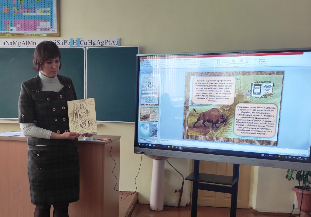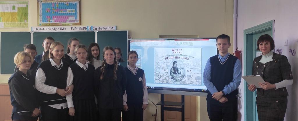 Да 500-годдзя з дня першага выдання паэмы М. Гусоўскага «Песня пра зубра» супрацоўнікі гарадской бібліятэкі № 1 для вучняў 8-х класаў ДУА «Сярэдняя школа № 3 г. Крычава» правялі літаратурную гадзіну «Песня пра зубра – жамчужына беларускай паэзіі». Мерапрыемства пачалося з паказу відэапрэзентацыі і відэароліка аб жыцці і творчасці пісьменніка, далей бібліятэкар пазнаёміла вучняў з гісторыяй саздання і кароткім зместам паэмы «Песня пра зубра». У завяршэнні літаратурнай гадзіны быў паказан відэафільм «Песнь о зубре». Дзякуючы таленту і багатаму жыццёваму вопыту Міколы Гусоўскага паэма стала песняй яго сэрца, гімнам Бацькаўшчыне, паэмай жыцця роднай зямлі.