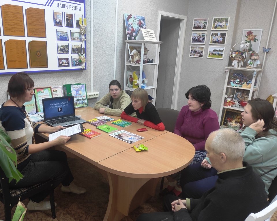 В рамках месячника Белой трости, традиционно проводимого в Беларуси с 15 октября по 15 ноября и призванного напомнить обществу о существовании людей с инвалидностью по зрению, сотрудниками центральной районной библиотеки проведена литературно-развлекательная программа «Пожелаем друг другу добра», для посетителей отделения социальной реабилитации, абилитации инвалидов и дневного пребывания для граждан пожилого возраста г. Кричева. Библиотекарь рассказала об истории «Белой трости», о книгах изданных шрифтом Брайля, о людях с ограниченными возможностями, достигших высот в различных сферах деятельности. Также шла речь о доброте, терпимости, дружбе. С большим удовольствием участники мероприятия приняли участие в конкурсах: «Собери пословицу о доброте», «Доскажи словечко», «Определи на ощупь», «В стране литературных героев». По завершению мероприятия для присутствующих был проведён обзор аудиокниг и книг укрупнённого шрифта «Мне книги открывают целый мир».