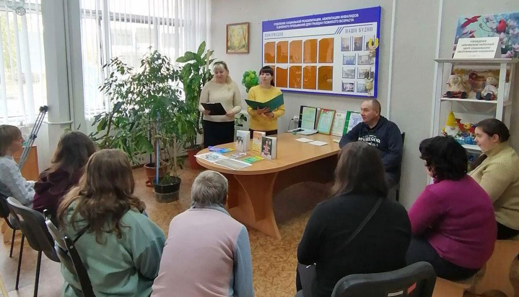 В рамках Недели родительской любви для посетителей отделения реабилитации, абилитации инвалидов и дневного пребывания для граждан пожилого возраста сотрудники городской библиотеки № 1 провели тематическую встречу-диалог «В сердцах родителей любовь не гаснет». В ходе мероприятия было сказано о празднике «14 октября – День матери», озвучены традиции празднования Дня матери, познакомились с историей возникновения праздника «21 октября – День отца». Дополнением к мероприятию была оформлена тематическая книжная выставка «Свет родительской любви».