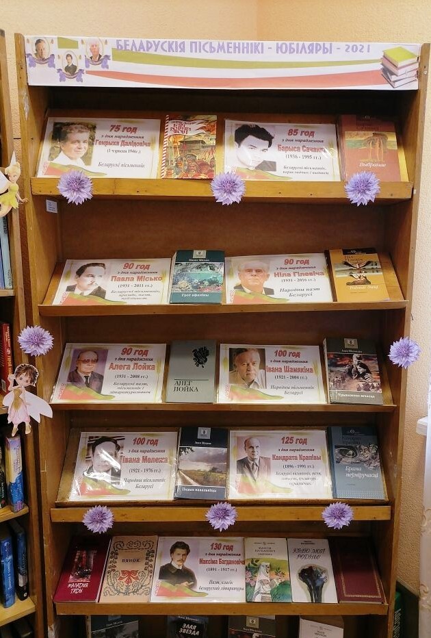 К юбилеям писателей, книгам-юбилярам, новинкам литературы оформляются книжные выставки: «Писатели-юбиляры», «Книги-юбиляры», «Детектив идёт по следу», «Для романтичных девчонок» и т.д.