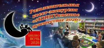 В рамках республиканской акции «Библионочь-2026» в филиале «Районная детская библиотека» состоялась квест-экскурсия «#КНИГОсветное путешествие 2026». Любители музыки и поэзии смогли проявить себя в зажигательном флешмобе «Колесики», повторяя танцевальные движения, и в литературном караоке «Стихотворная карусель», где звучали любимые стихи. Особый интерес вызвала экскурсия этнографической экспозиции «Да вытокаў народнай культуры». Участники библио-квиза «Тайна старого сундука» окунулись в мир белорусских народных традиций, познакомились с национальной одеждой и предметами быта наших предков. Для самых находчивых и эрудированных был подготовлен квест-room «Библиотечные бродилки». Атмосферу праздника дополнили уютное литературное кафе «Вкусные книги» и зона настольных игр «Boarding game», где каждый мог найти занятие по душе. Завершилась «Библионочь-2026» ярким флешмобом «Улыбнитесь, вы в библиотеке!». Дети с радостью фотографировались в масках любимых сказочных героев, держа в руках свои самые дорогие книги, оставляя в памяти незабываемые впечатления от этого волшебного вечера.