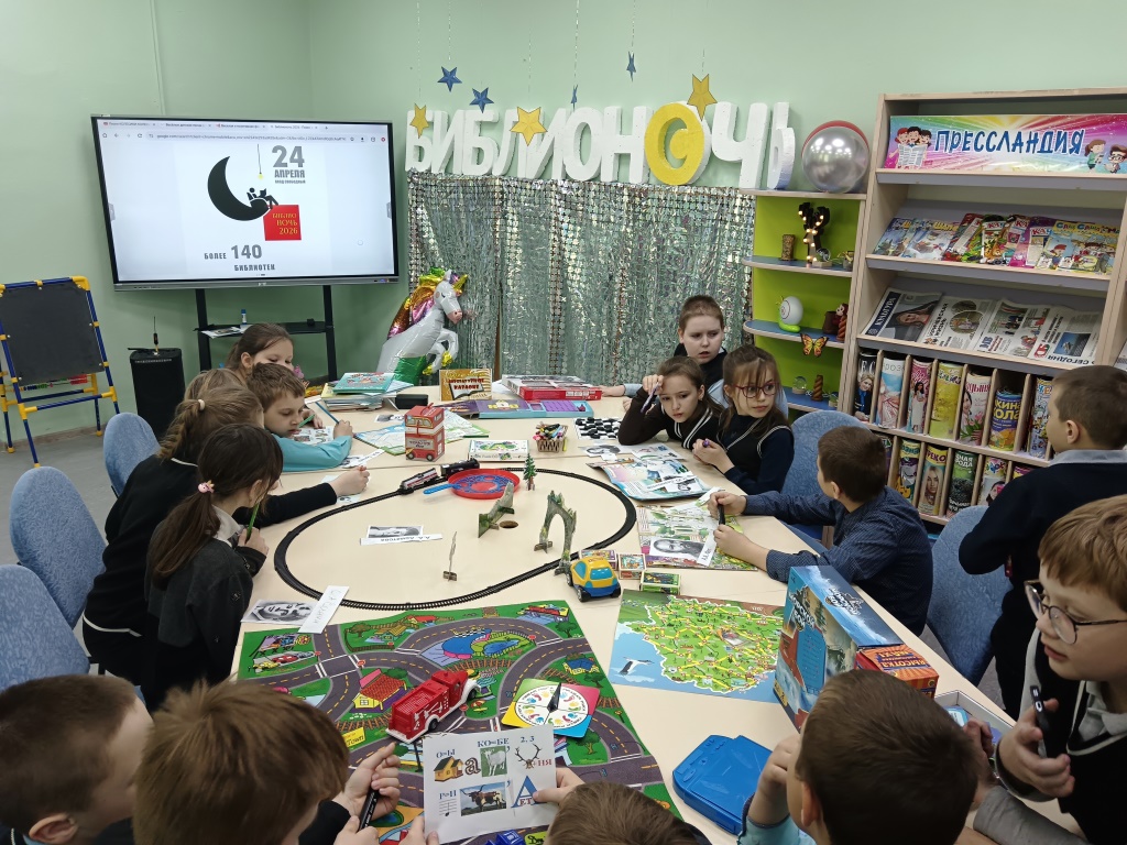 В рамках республиканской акции «Библионочь-2026» в филиале «Районная детская библиотека» состоялась квест-экскурсия «#КНИГОсветное путешествие 2026». Любители музыки и поэзии смогли проявить себя в зажигательном флешмобе «Колесики», повторяя танцевальные движения, и в литературном караоке «Стихотворная карусель», где звучали любимые стихи. Особый интерес вызвала экскурсия этнографической экспозиции «Да вытокаў народнай культуры». Участники библио-квиза «Тайна старого сундука» окунулись в мир белорусских народных традиций, познакомились с национальной одеждой и предметами быта наших предков. Для самых находчивых и эрудированных был подготовлен квест-room «Библиотечные бродилки». Атмосферу праздника дополнили уютное литературное кафе «Вкусные книги» и зона настольных игр «Boarding game», где каждый мог найти занятие по душе. Завершилась «Библионочь-2026» ярким флешмобом «Улыбнитесь, вы в библиотеке!». Дети с радостью фотографировались в масках любимых сказочных героев, держа в руках свои самые дорогие книги, оставляя в памяти незабываемые впечатления от этого волшебного вечера.